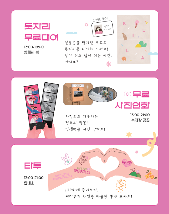 - 경주 프리마켓 및 푸드트럭 협회가 함께해 다양한 볼거리와 먹거리를 선사합니다.