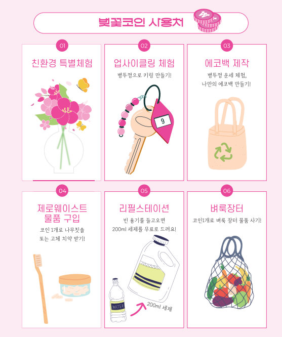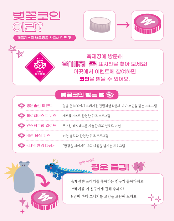 - 폐플라스틱 병뚜껑을 사용 만든 벚꽃코인을 모으는 이벤트를 진행
