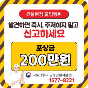 건설 현장에서의 불법행위 신고 포상금이 기존 50만원에서 최대 200만원으로 상향 조정되었습니다.