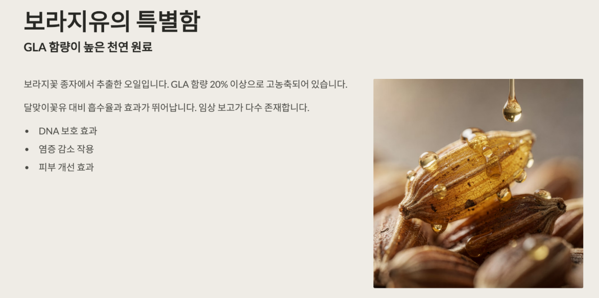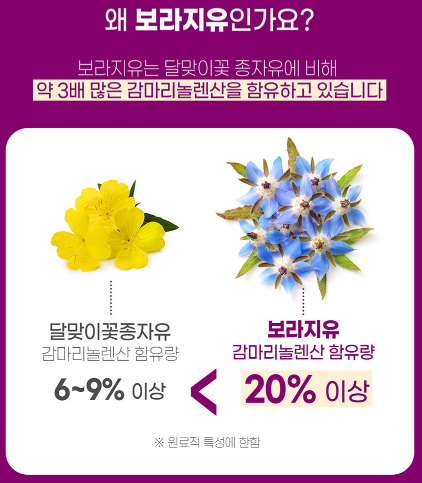 보라지유는 달맞이꽃종자유보다 감마리놀렌산 함량이 더 높다고 알려져 있어요