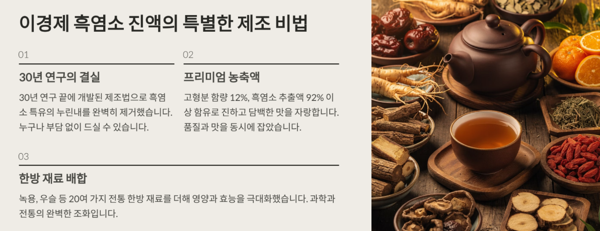 이경제 흑염소 진액 진 엑기스 즙은 신뢰할 수 있는 국내산 원료를 사용하고
