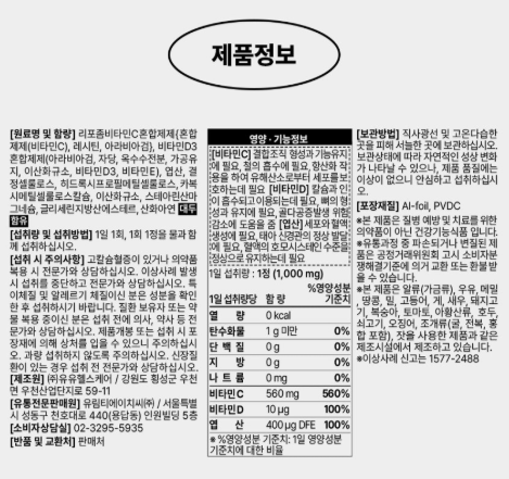 또한 고함량 비타민C 1,000mg과 비타민D, 엽산까지 함께 들어 있어요