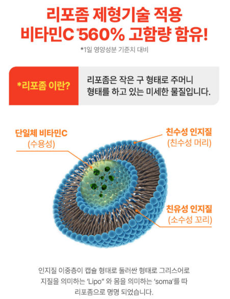 우리 몸의 세포막과 유사한 구조로 비타민C를 감싸 체내에 안정적으로 전달합니다
