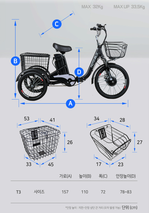 | 모토벨로 T3 350W 48V 세발 전기자전거 | |
