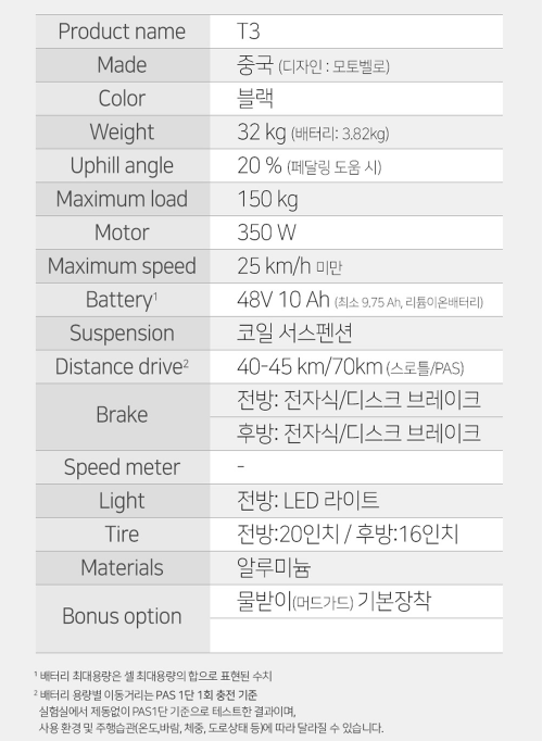 | 특징 파스 및 스로틀 겸용 원동기 장치 자전거로 면허가 필요 장점 최대 주행거리 파스 75km 스로틀 45km로 넉넉한 배터리 용량을 자랑합니다. 가격 1,650,000 원 |