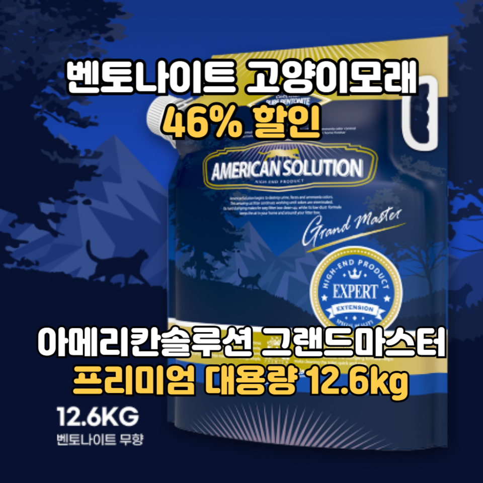 아메리칸솔루션 그랜드마스터 프리미엄 대용량 12.6kg 벤토나이트 고양이모래 46% 할인