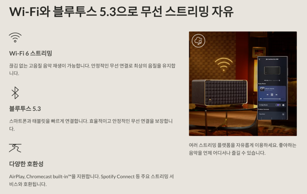 JBL Authentics 500 – 돌비 애트모스 와이파이 지원 3D 사운드 프리미엄 블루투스 스피커 : 삼성공식