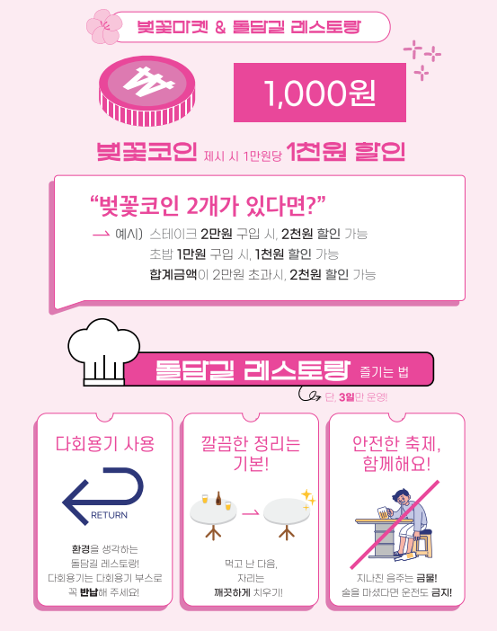 - 폐플라스틱 병뚜껑을 사용 만든 벚꽃코인을 모으는 이벤트를 진행