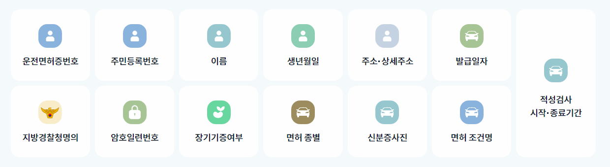 - 모바일 운전면허증은 암호화된 형태로 저장되어 있어, 도용이나 위조의 위험이 적습니다.