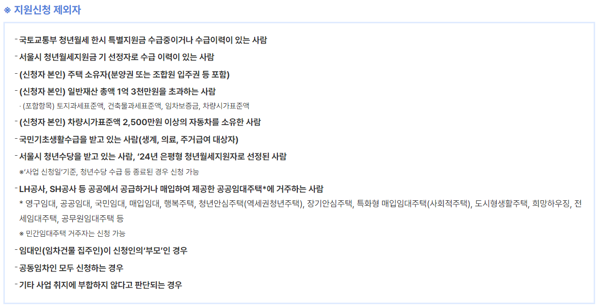 - 서울시나 국토교통부로 부터 주택 지원을 받은 이력이 있는 경우 제외됩니다.