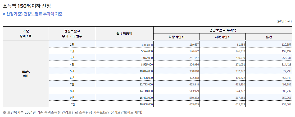 - 가구의 소득이 기준 중위소득 150% 이하인 경우 신청할 수 있습니다.