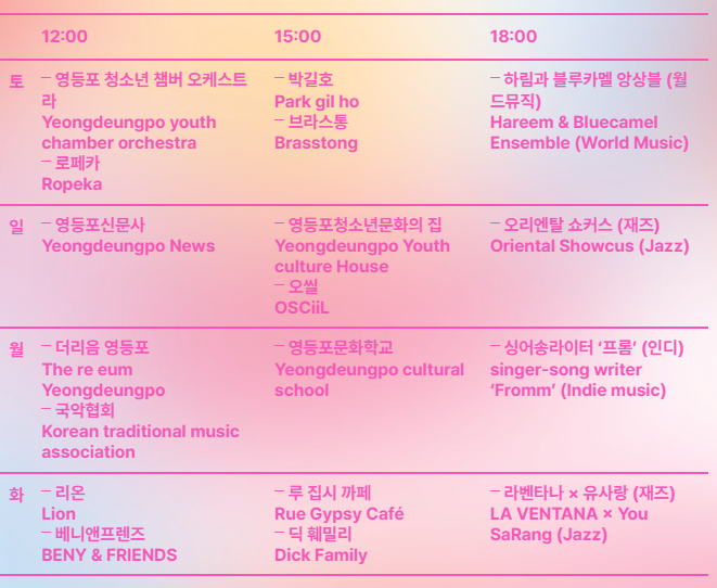 - 특별 공연 및 다양한 먹거리와 전시 체험 피크닉을 제공합니다.