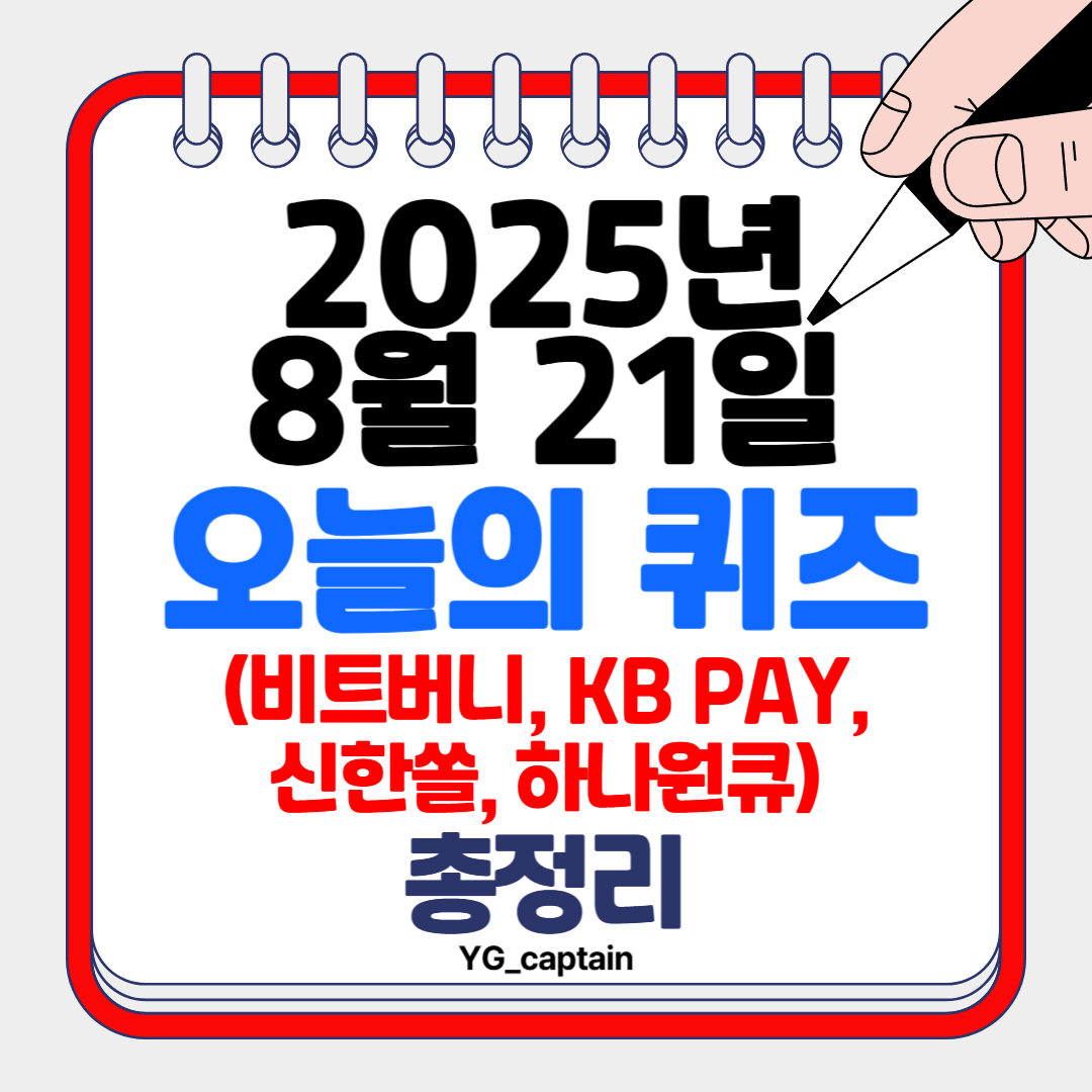 2025년 8월 21일 오늘의 퀴즈 총정리(비트버니·KB PAY·신한SOL 쏠퀴즈·슈퍼SOL 출석퀴즈·하나원큐 퀴즈)