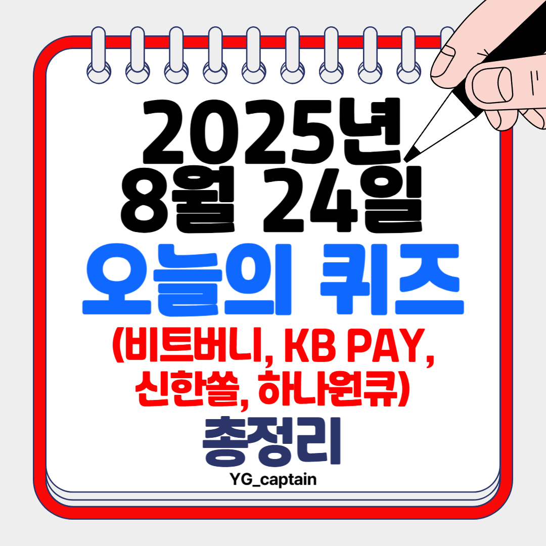 오늘은 비트버니 오늘의 상식퀴즈·OX퀴즈, KB Pay(리브메이트), 신한SOL 쏠퀴즈·슈퍼SOL·퀴즈팡팡, 하나원큐 축구퀴즈까지 모두 정리해드릴게요.