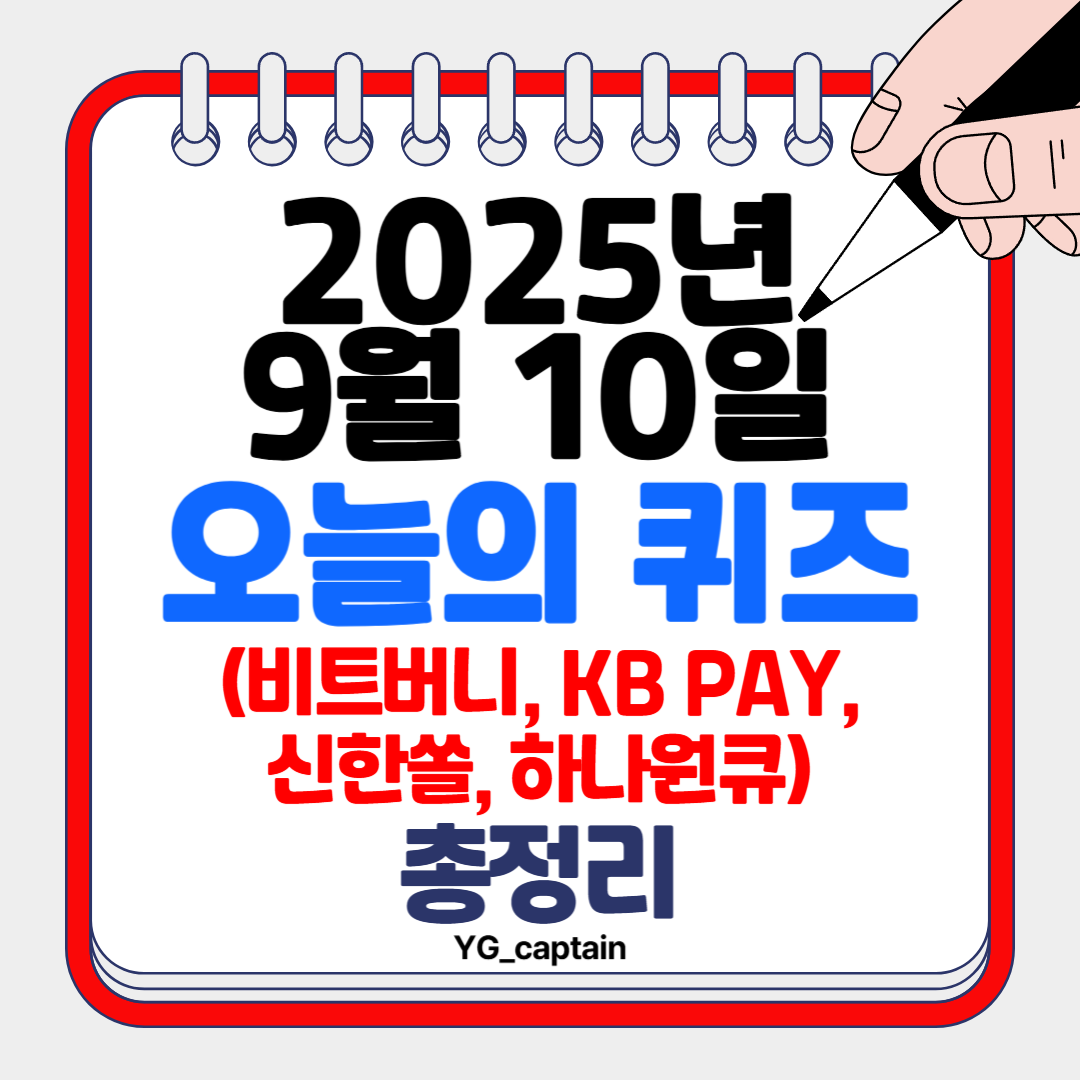 2025년 9월 10일 오늘의 퀴즈 총정리(비트버니·KB PAY·신한SOL 쏠퀴즈·슈퍼SOL 출석퀴즈·하나원큐 퀴즈)