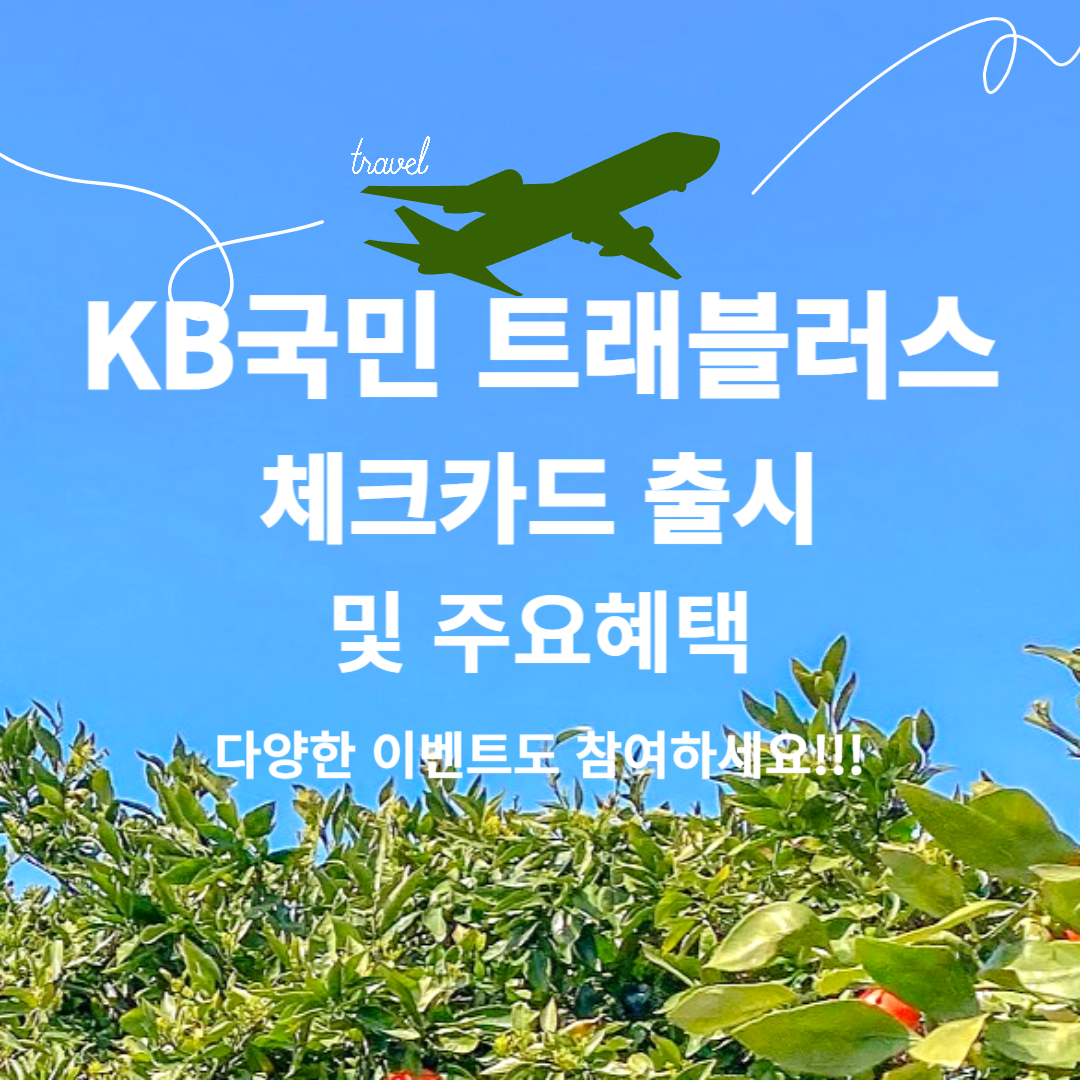 KB국민 트래블러스 체크카드는 국내와 해외여행을 즐기시는 분들을 위한 맞춤형 혜택을 다양한 영역에서 갖춘 상품입니다. 출시 이벤트에 참여하여 수수료 면제 등 다양한 경품에 혜택까지 누리며 행복한 여행길이 되시길 바랍니다.